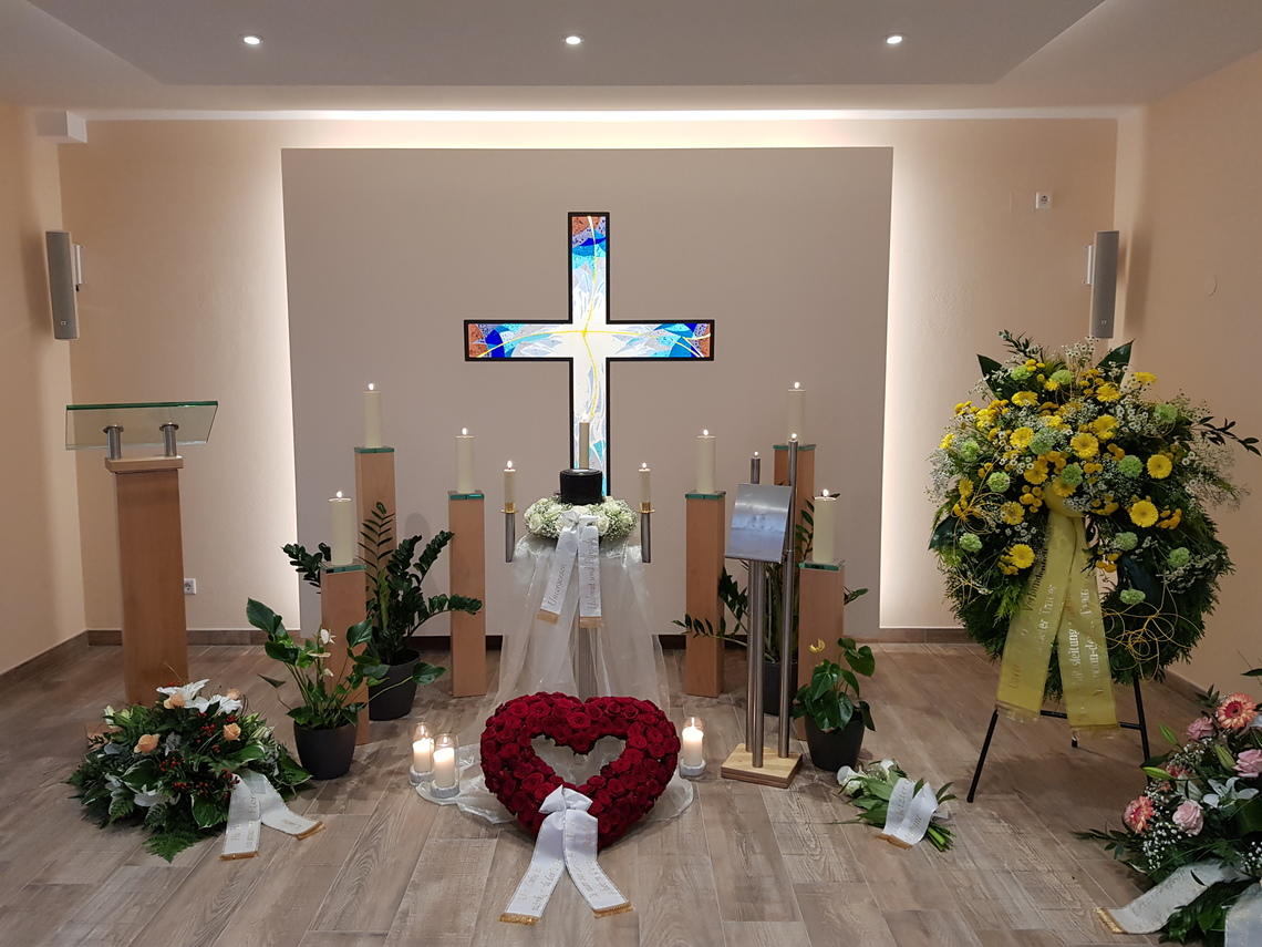 befindet sich unsere Trauerhalle, die nach Bedarf in zwei Verabschiedungsräume